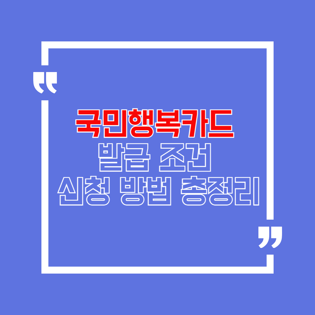 하지만 카드만 발급받으면 끝이 아니죠. 국민행복카드 발급 조건, 혜택 사용 조건, 발급 방법 등 꼭 알아야 할 정보가 많습니다.